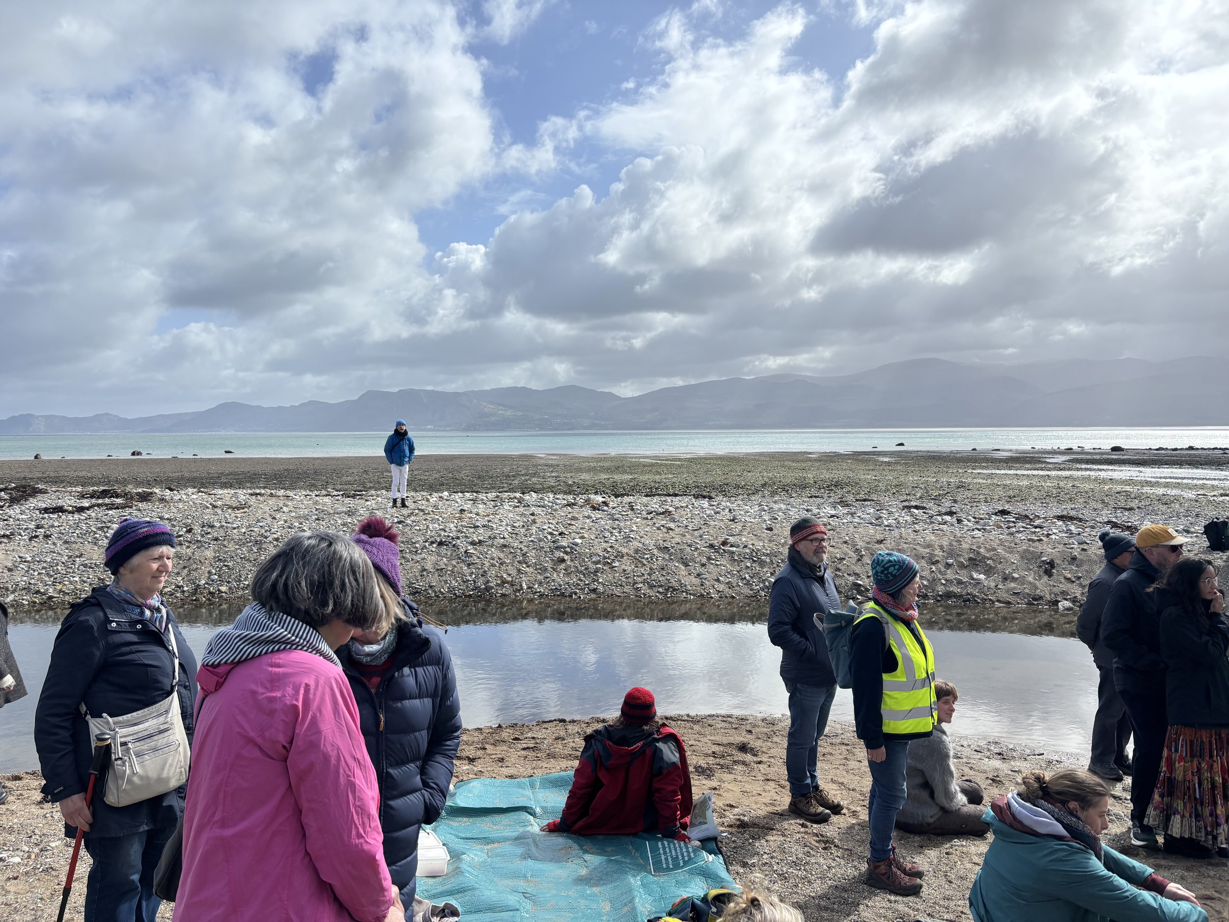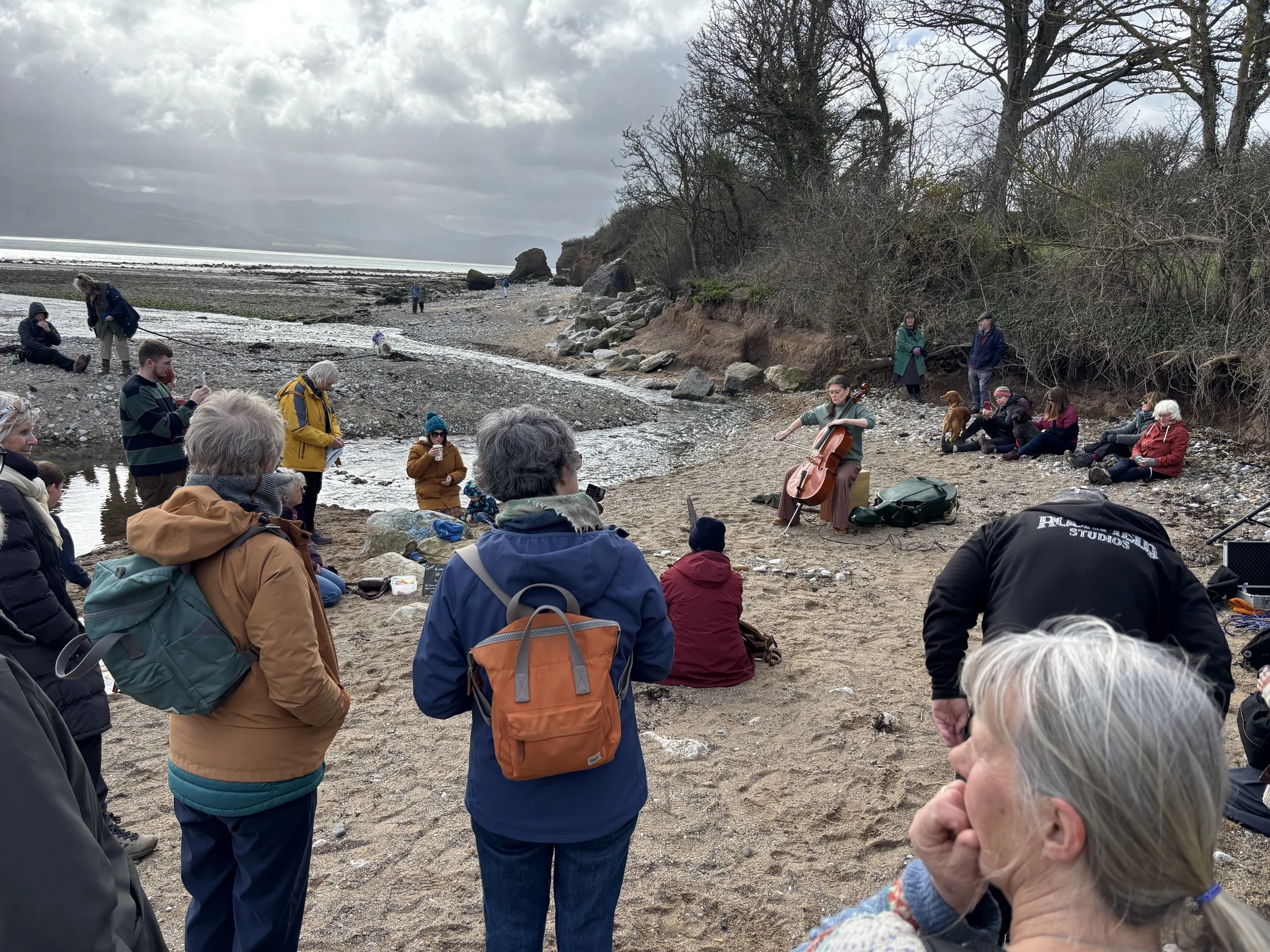 seismic sound performance with live cello, rocks and data, Lleiniog Beach