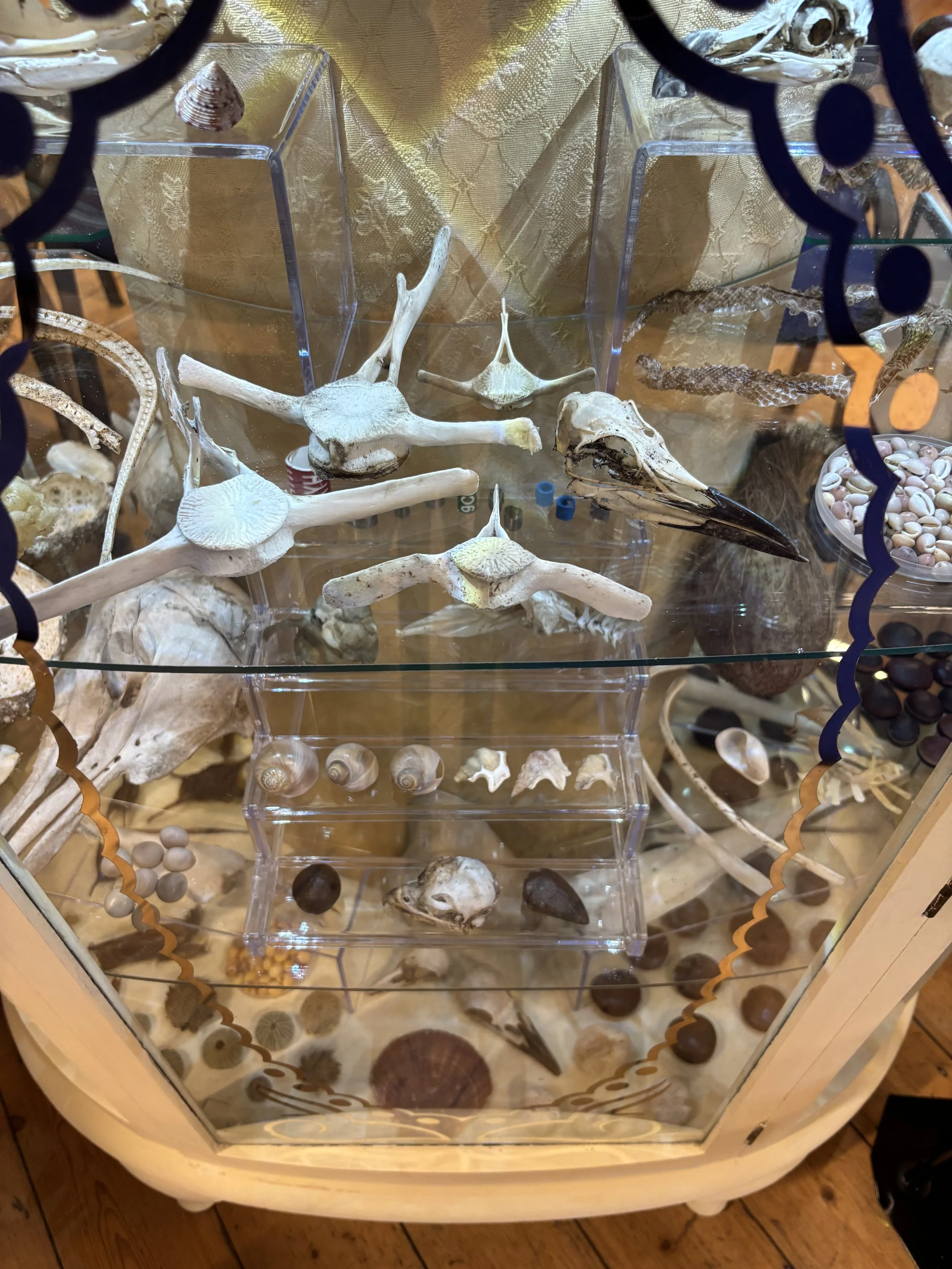 A Victorian cabinet of curiosities, filled with the treasures from the sea. A collection of natural objects found whilst beach cleaning in Wales.