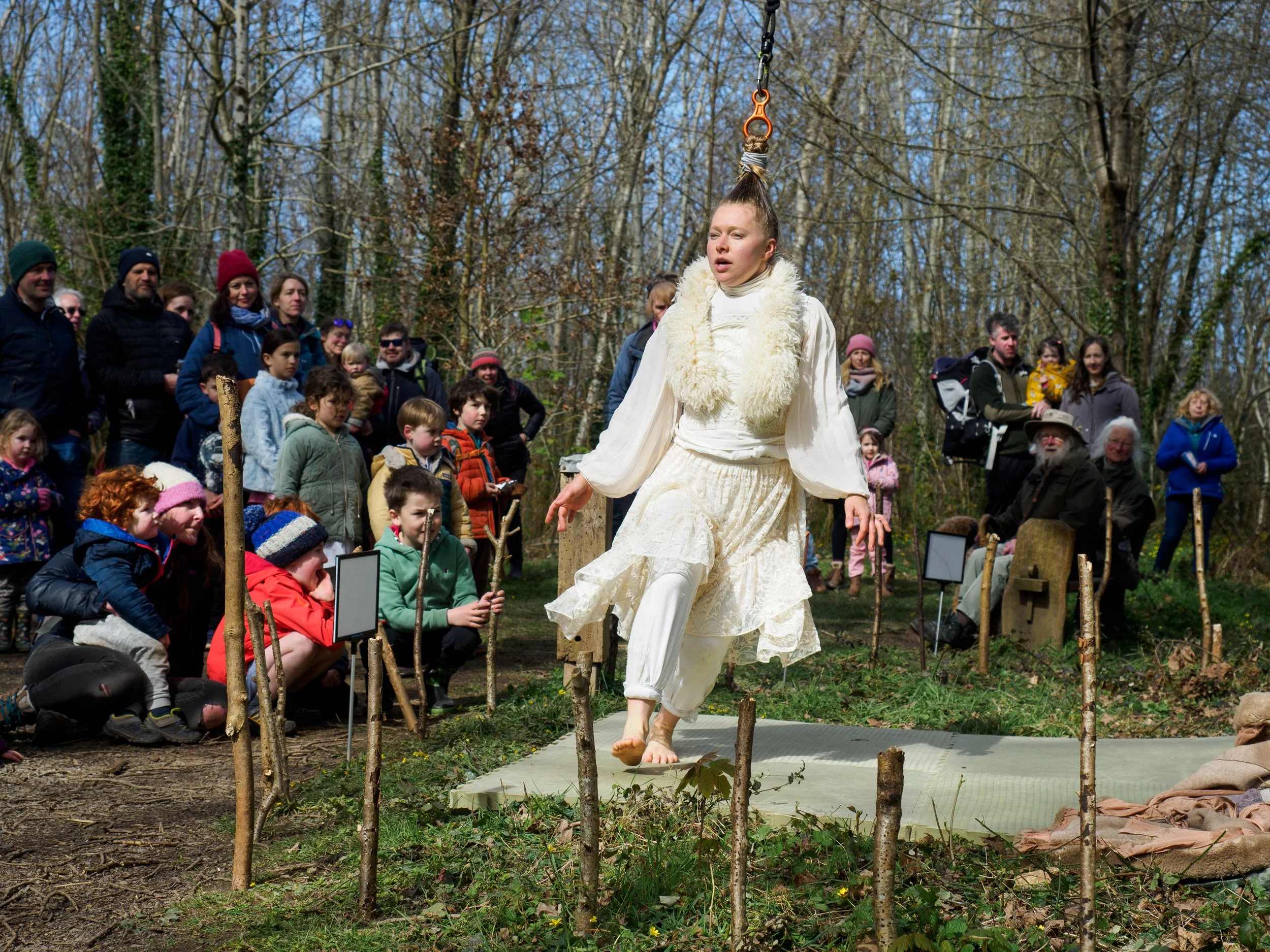 An aerial circus, theatre and live music performance suspended from an ancient tree near Aberlleiniog Castle, reimagining the haunting folk tale of the Llanddona Witches in a swirl of height, shadow and song.