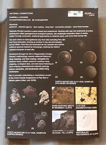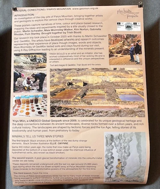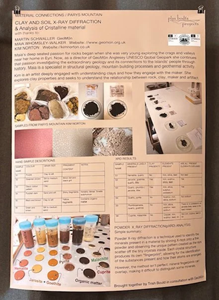 An investigation of the clay pits of Parys Mountain, bringing together artists and geologists to explore the various clays through creative works. These posters capture narratives of time, colour and place-based research—mapping the ideas and experiments inspired by a site usually closed to the public.