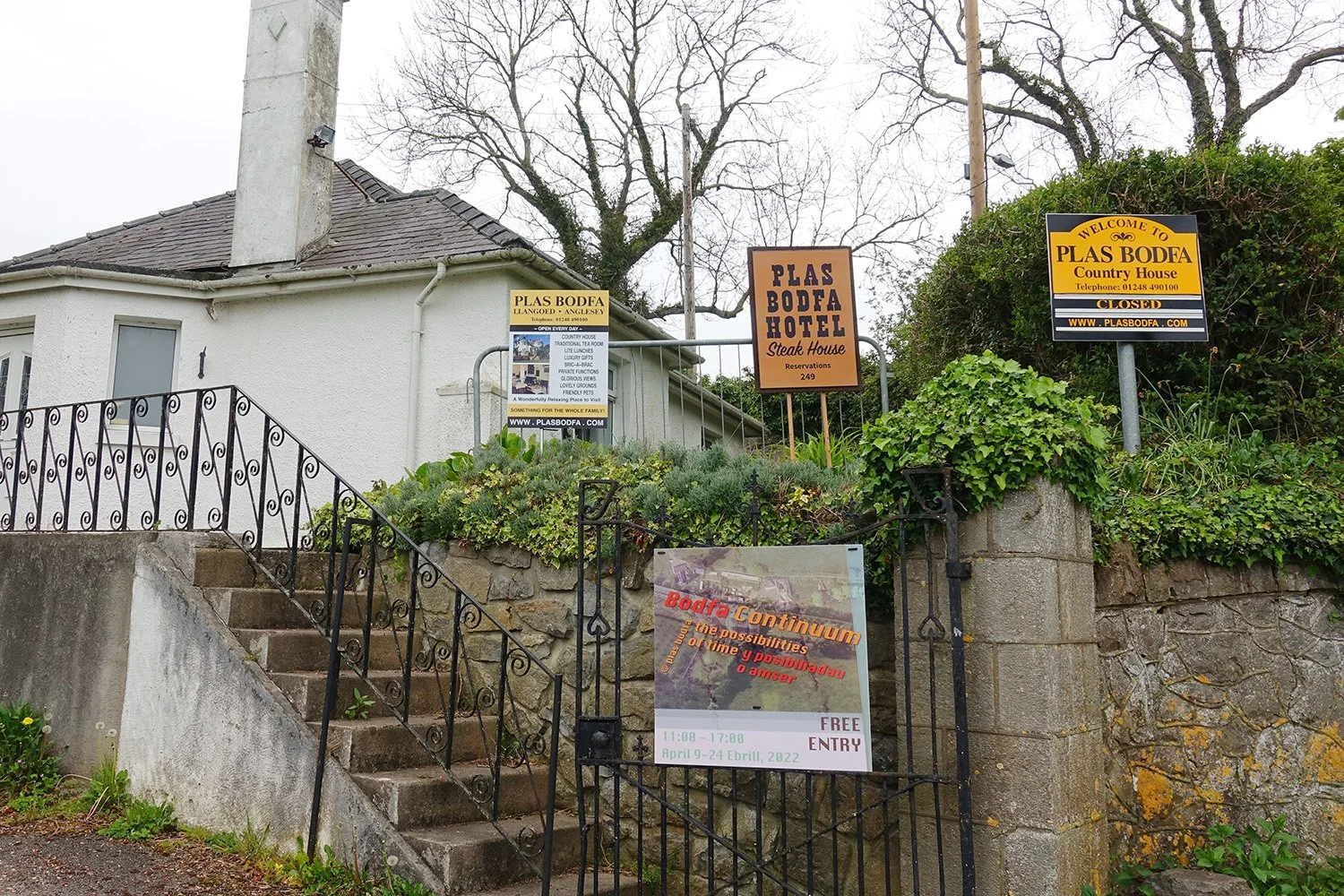 Visitors to the exhibition were greeted with (and confused by) replicas of historical Plas Bodfa welcome signs.