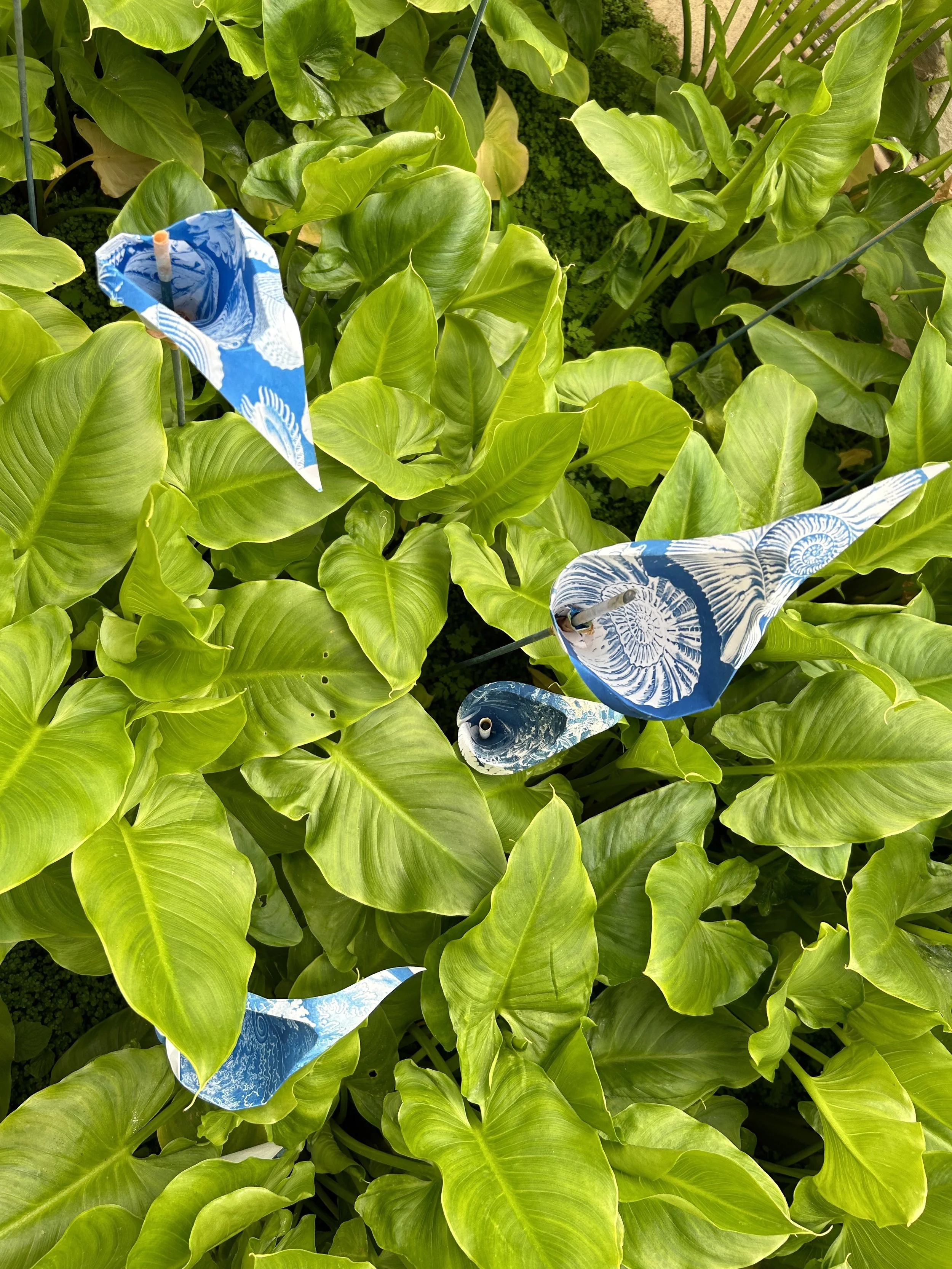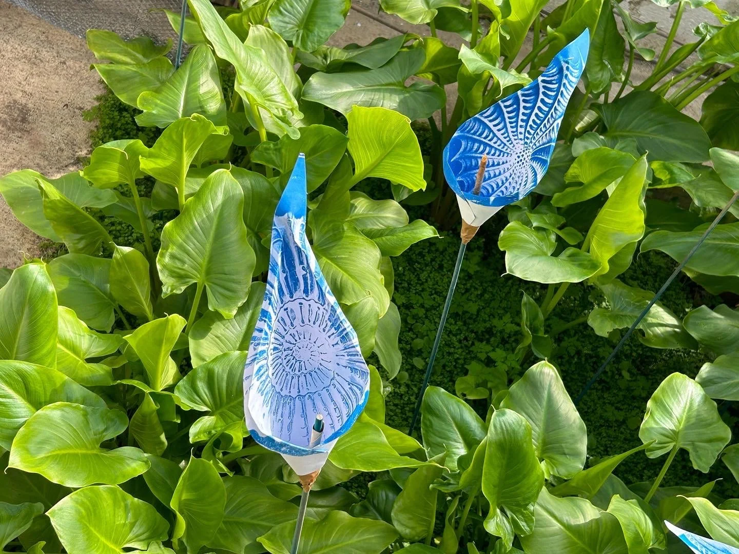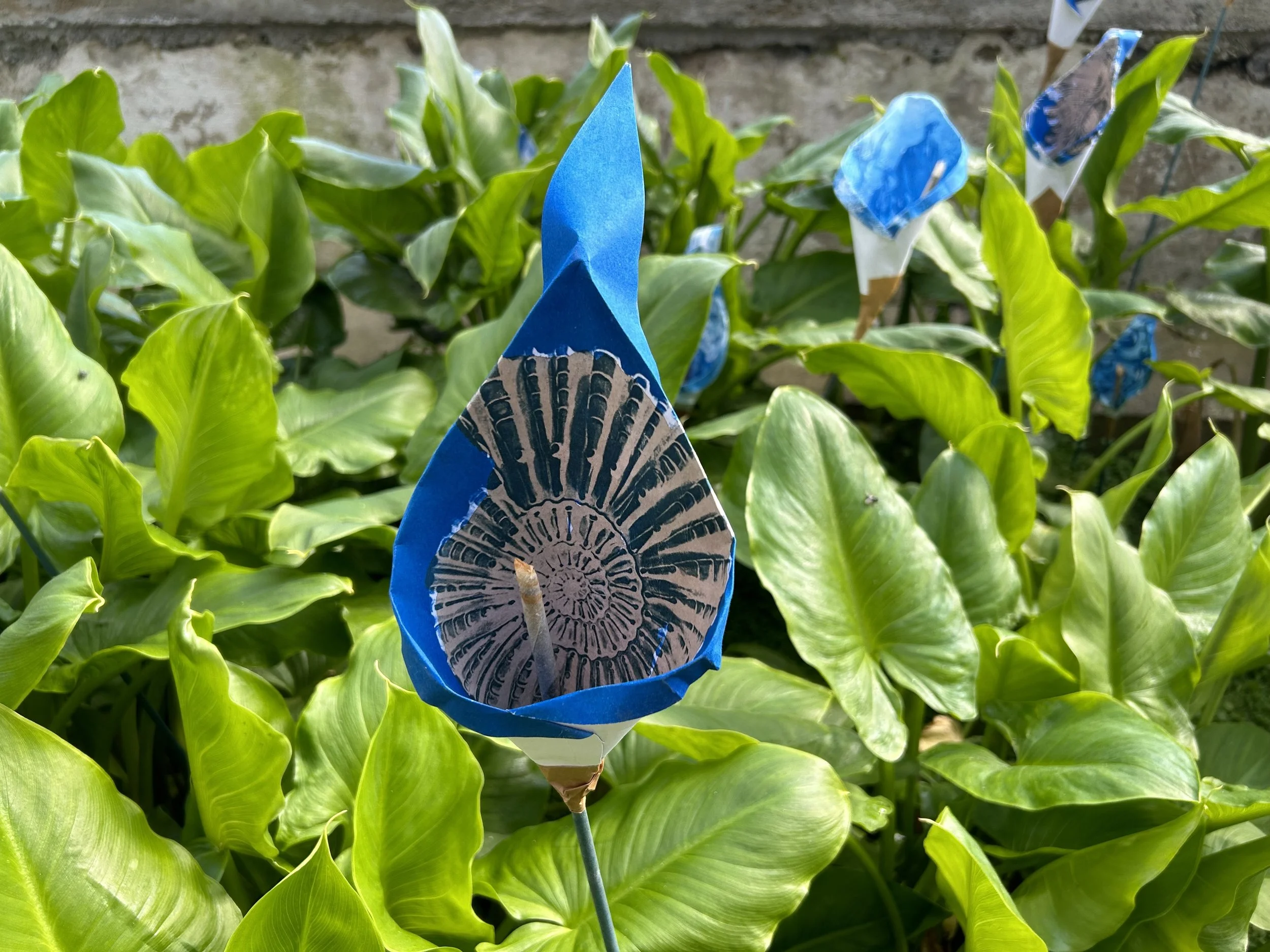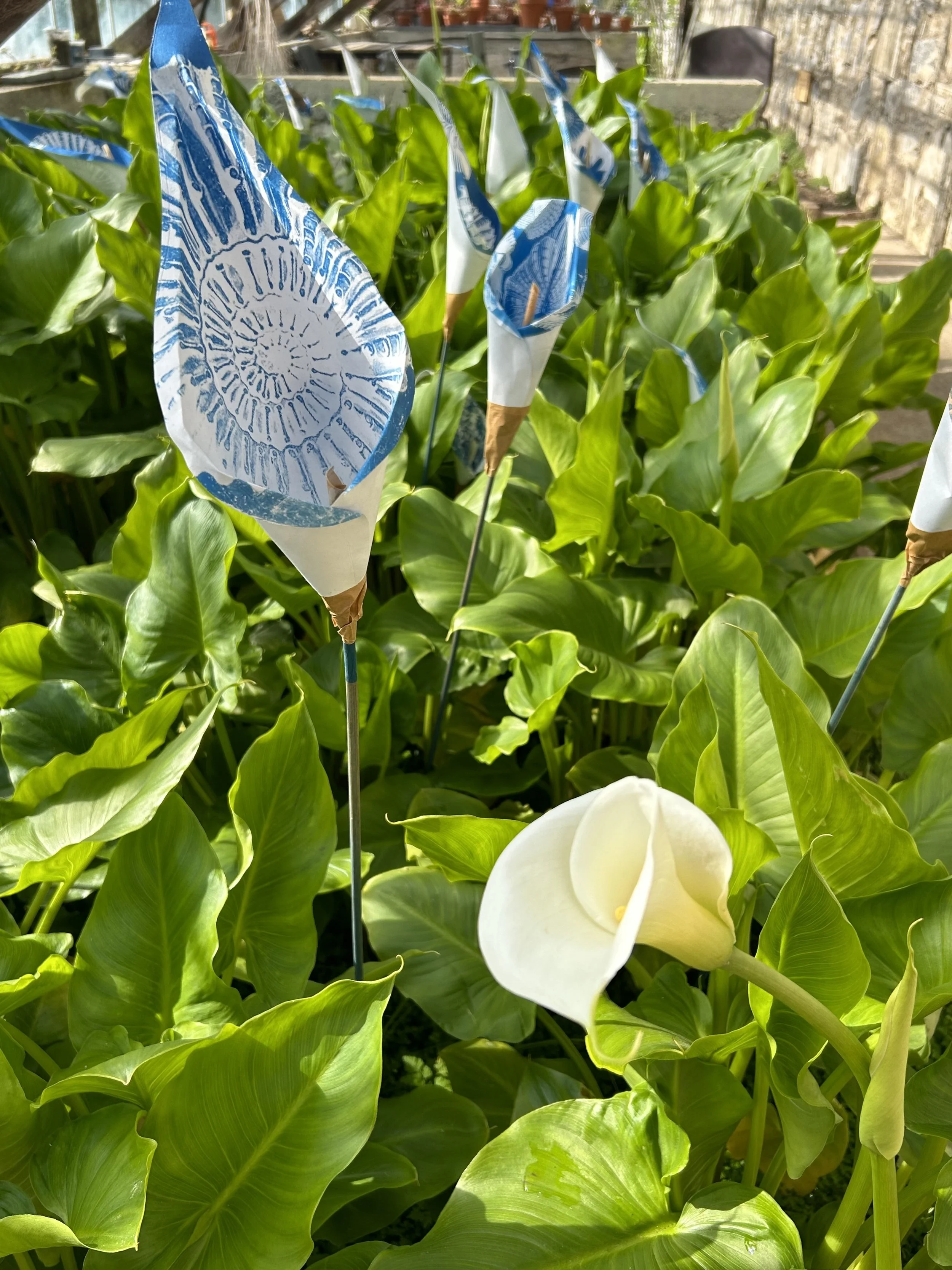 A special edition of the cyanolillies inspired by the limestone explorations of Mari Rose and Julie. The images are ammonites, a fossil often found in limestone.
