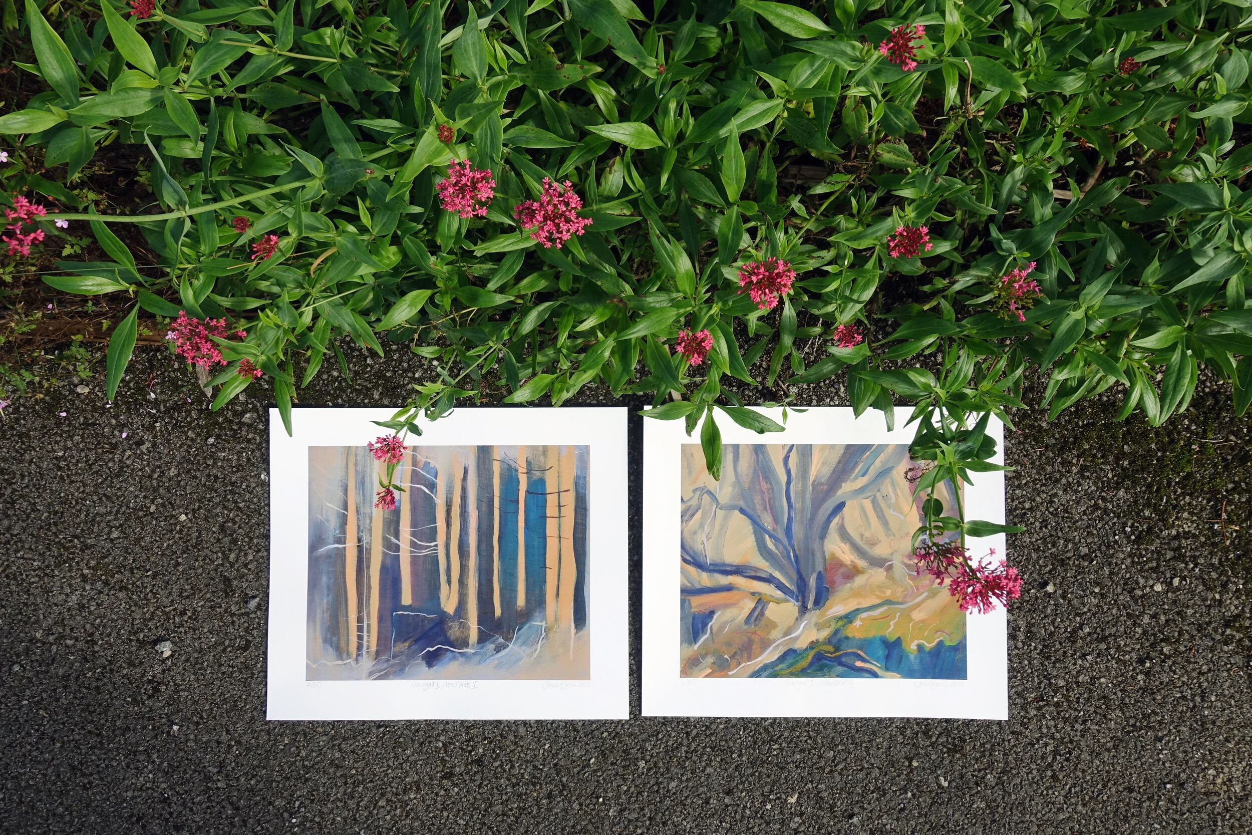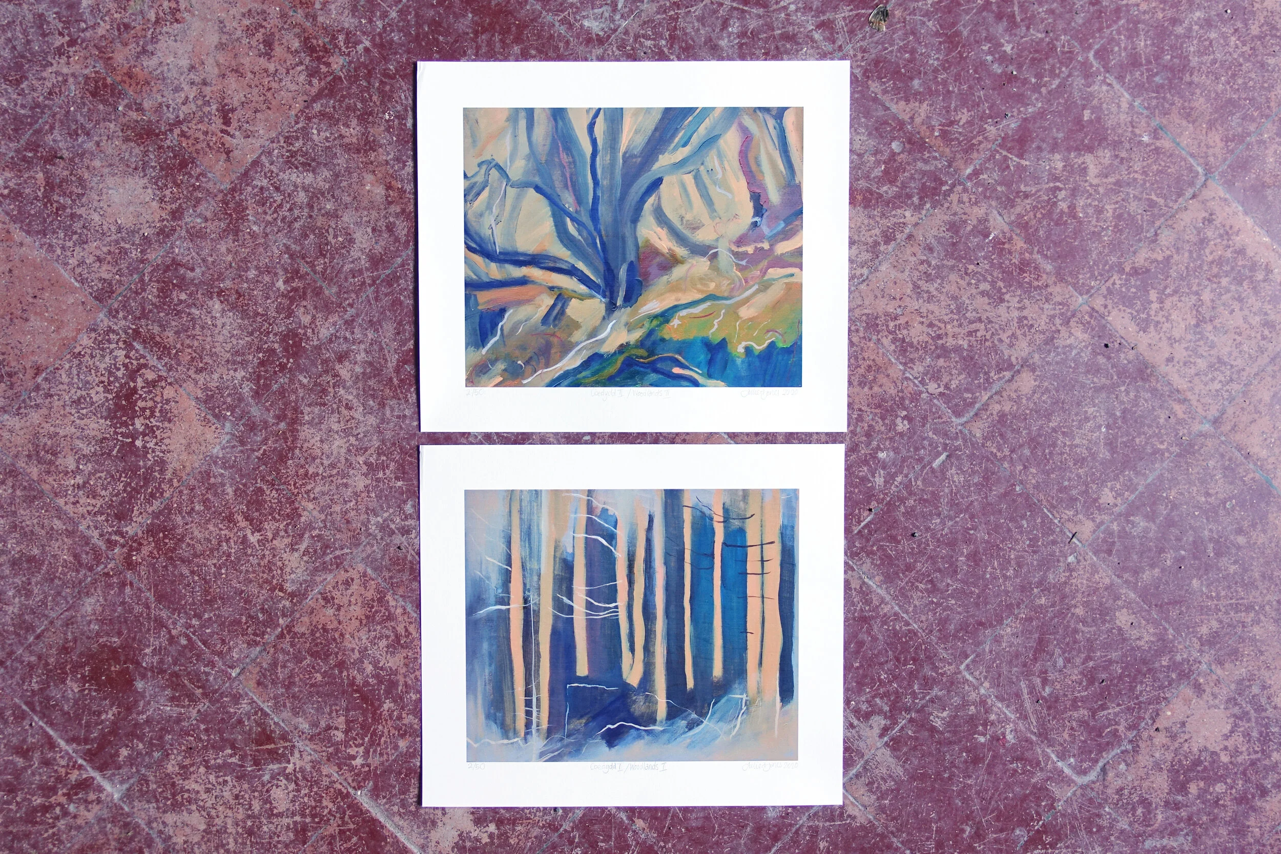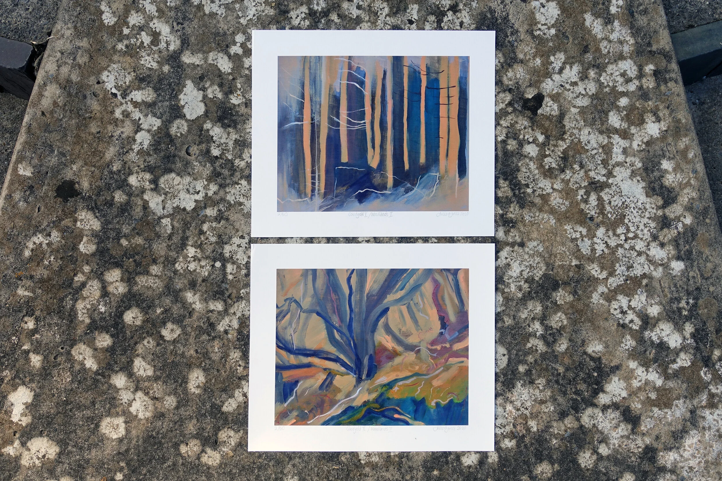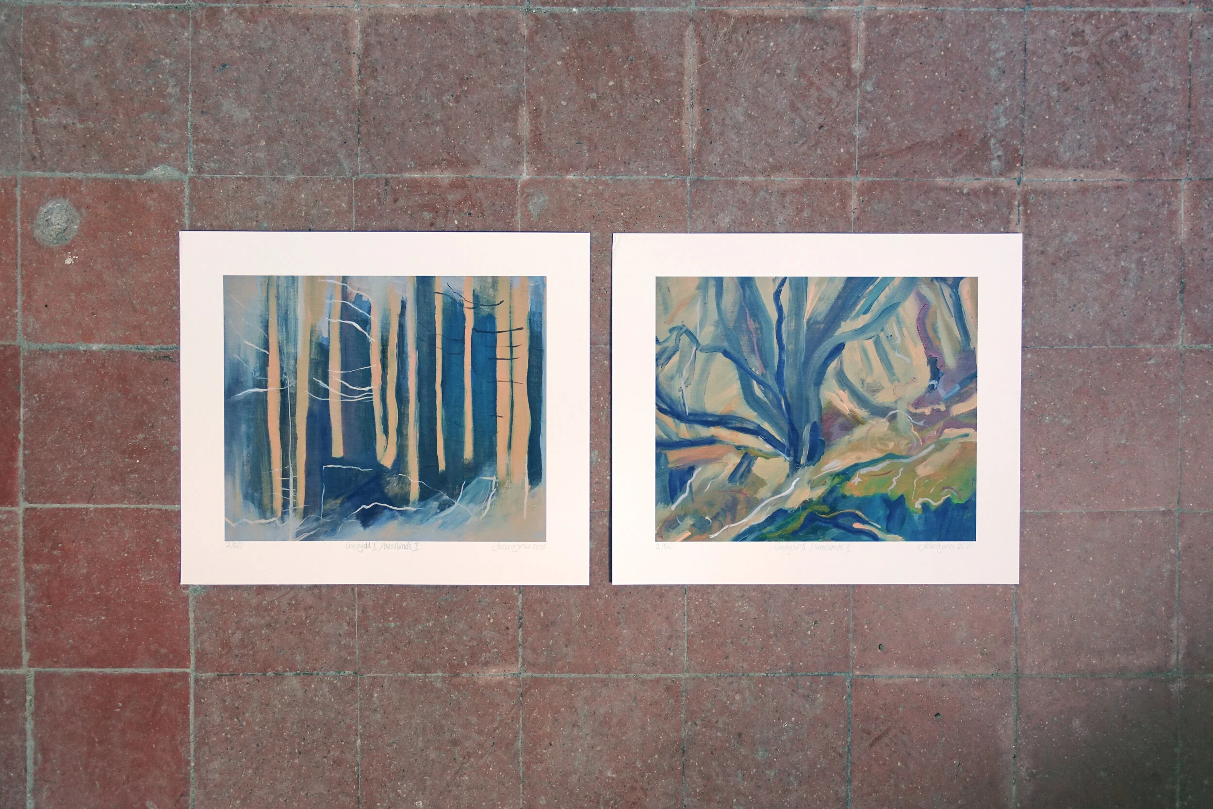 A pair of prints that explore contrasts in woods and land. The works are portals into the spaces of nature, both intimate and immense, a place to sense patterns and contemplate biodiversity.