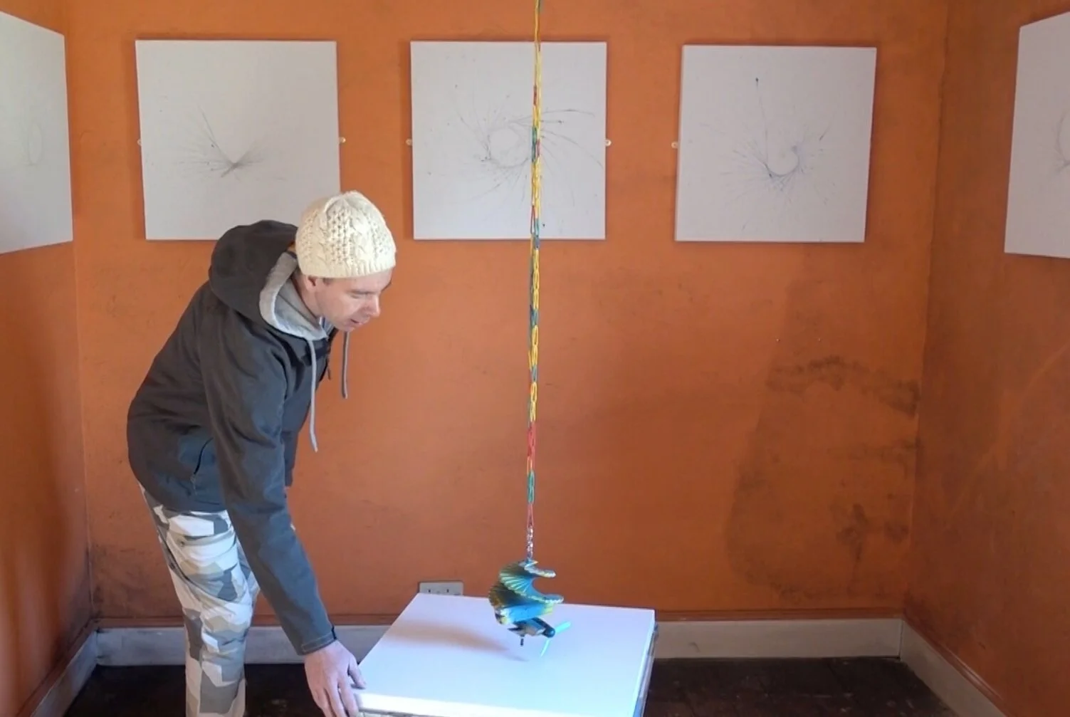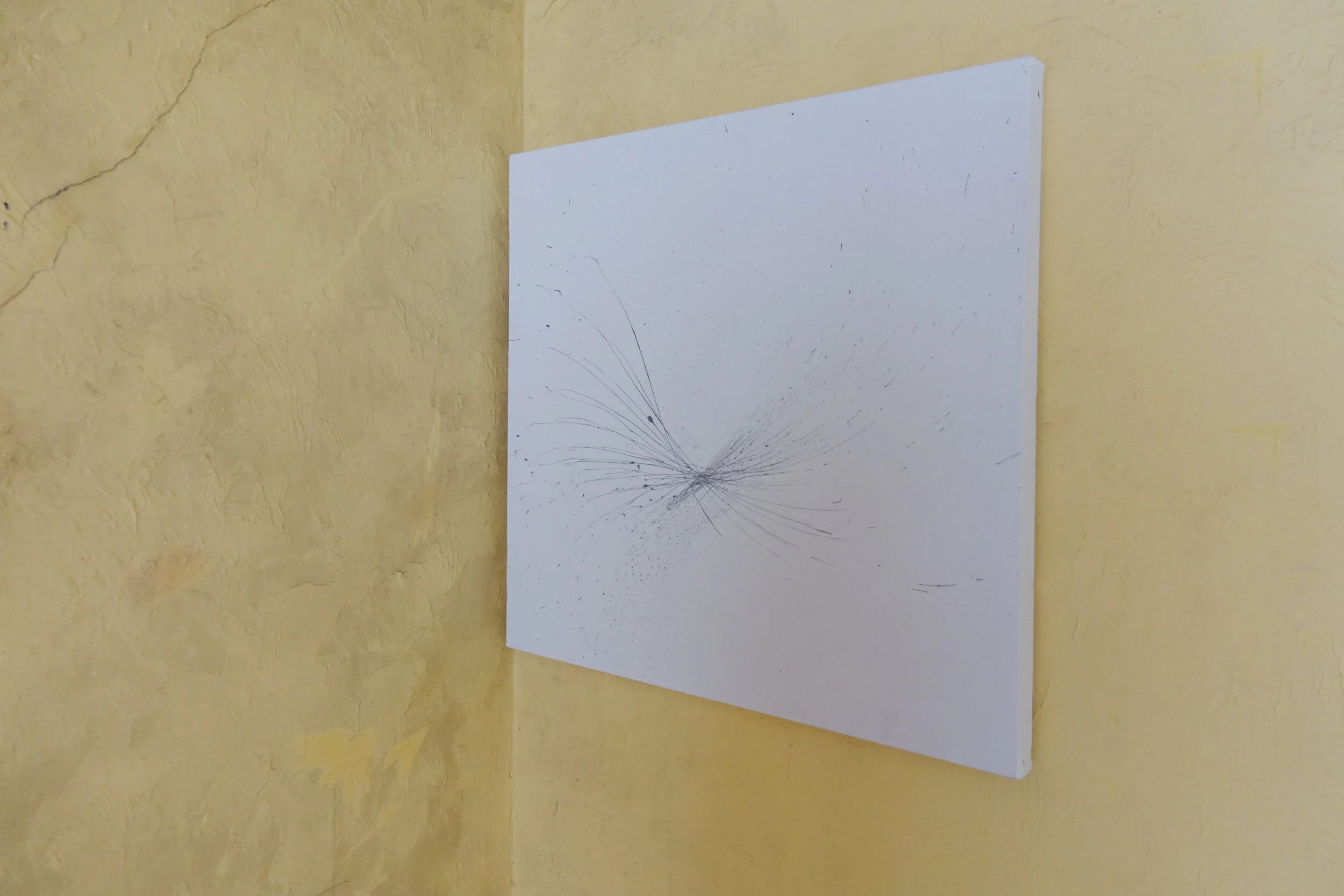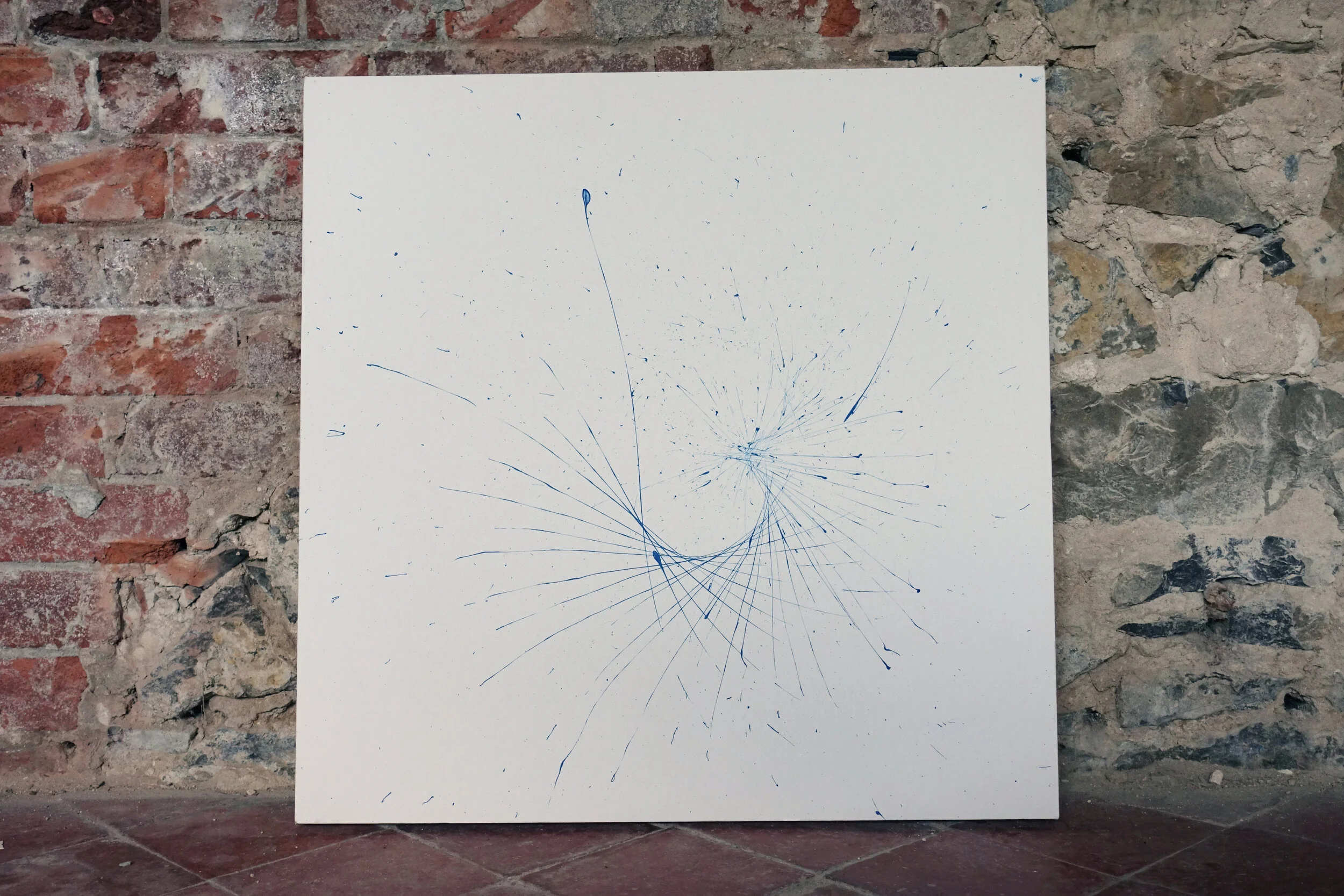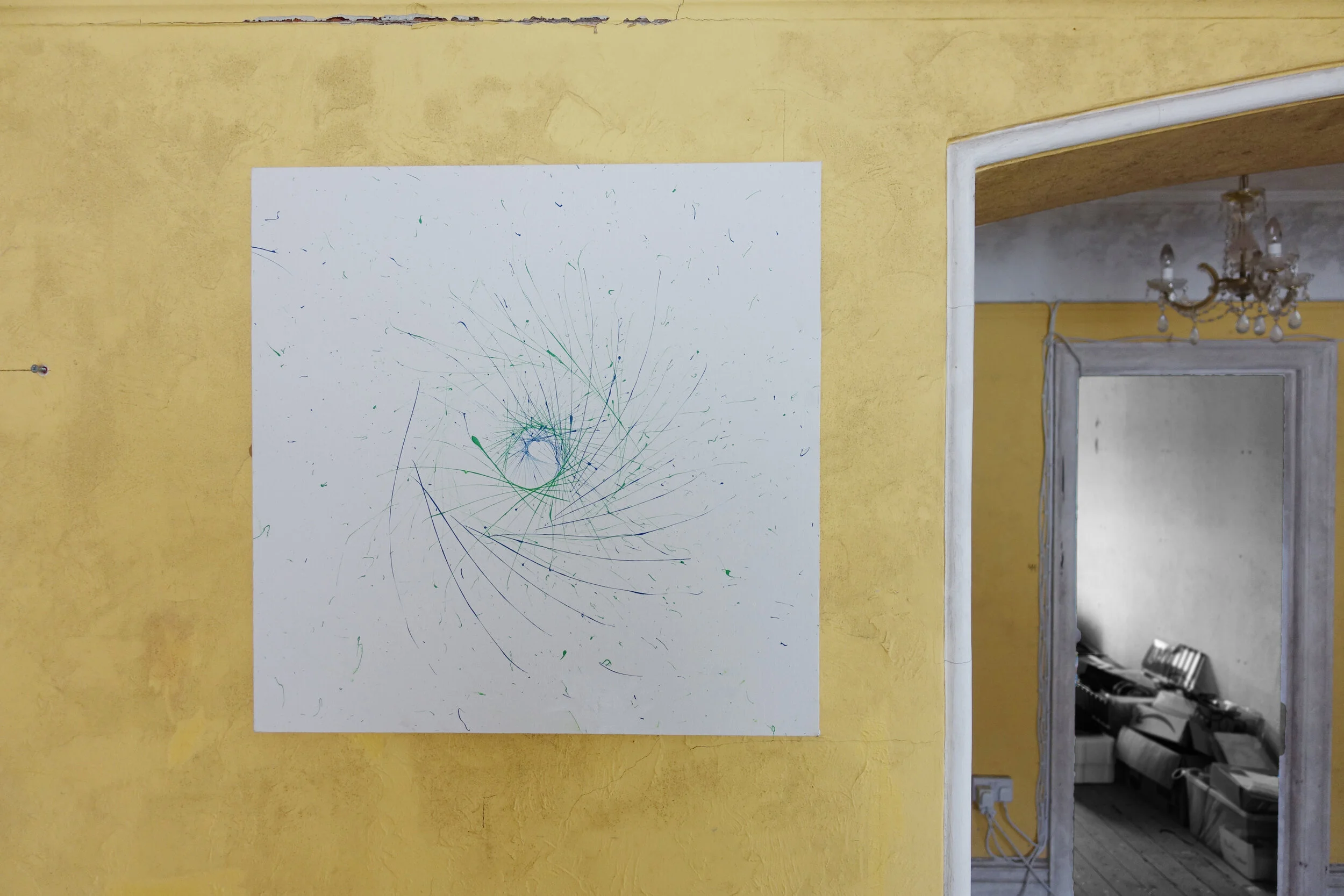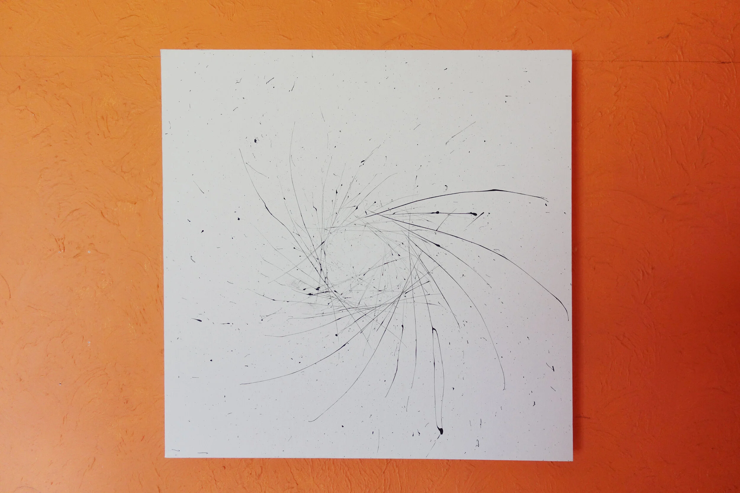 These paintings were created using a machine of Cassidy’s own invention. Both the spinner and the canvas rotate, creating two sets of variables. Each painting is similar, yet completely unique and could never be created again.