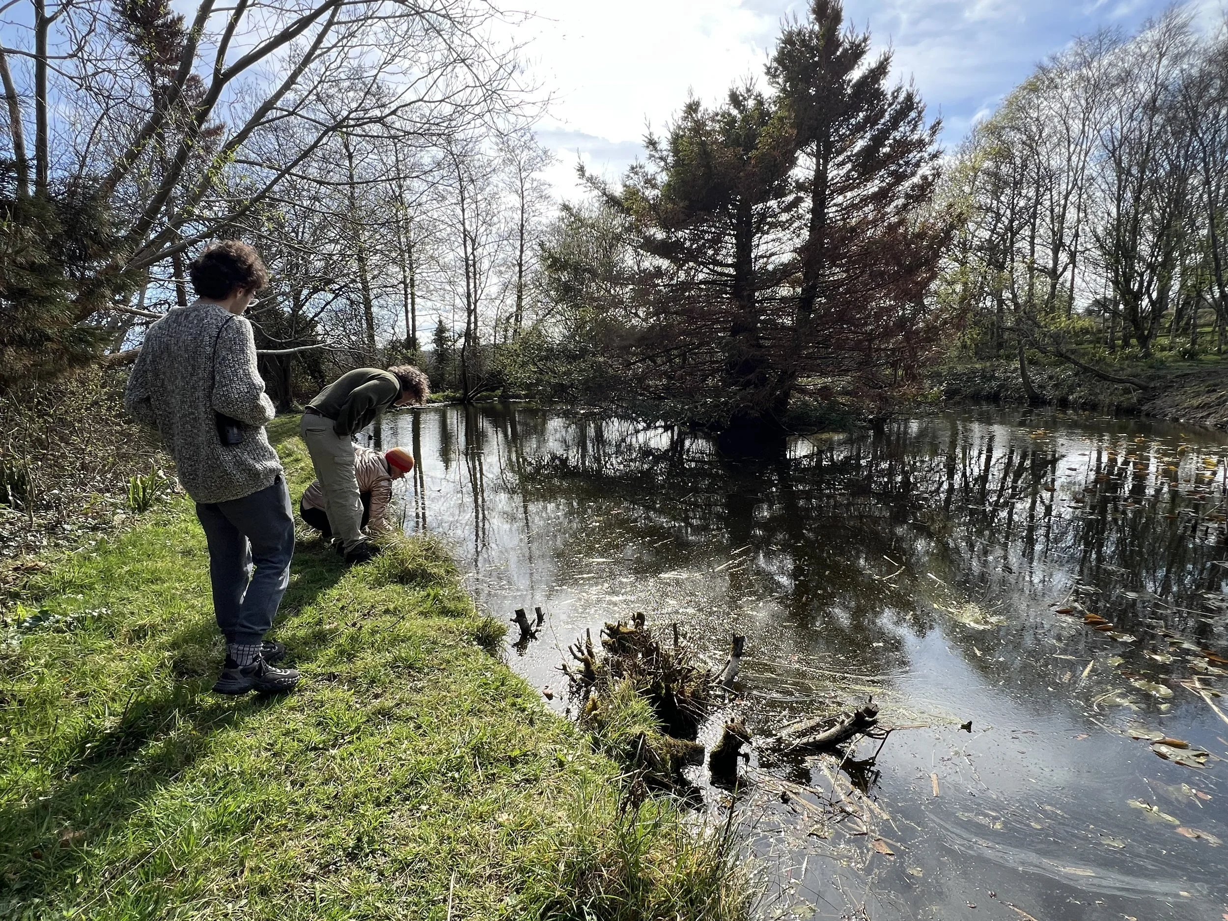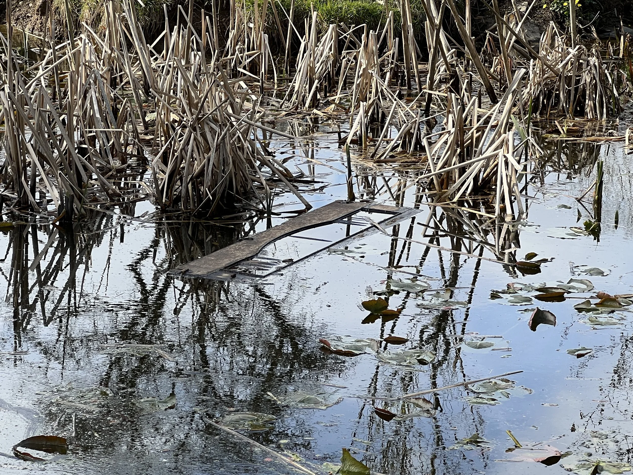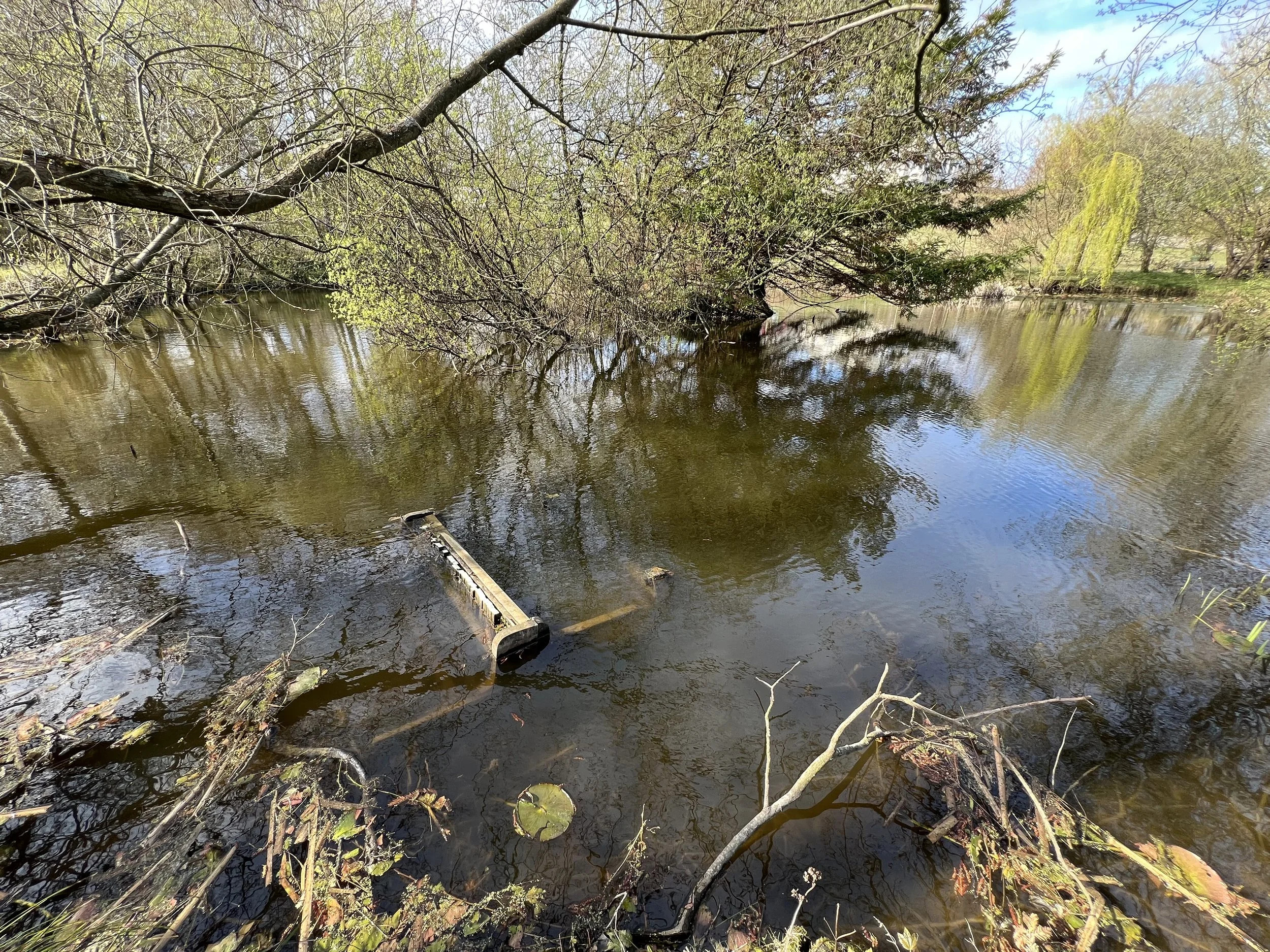 On the morning of March 26, 2025, I walked to the pond with Julie, Dominic, and Ynyr to see the piano for the first time. The piano lay on its back, submerged but for the tops of its keys that rose slightly above the still surface of the pond. It reminded me of a shipwreck, fuzzy with brown algae and pond residue. Or perhaps Shakespeare’s Ophelia; the Millais painting came to mind, featuring a drowned Ophelia in a gossamer skirt that billows and disappears into the depths of the water, with two hands that float on the surface like blooming water lilies. Both beautiful and tragic, heartbreaking and serene.