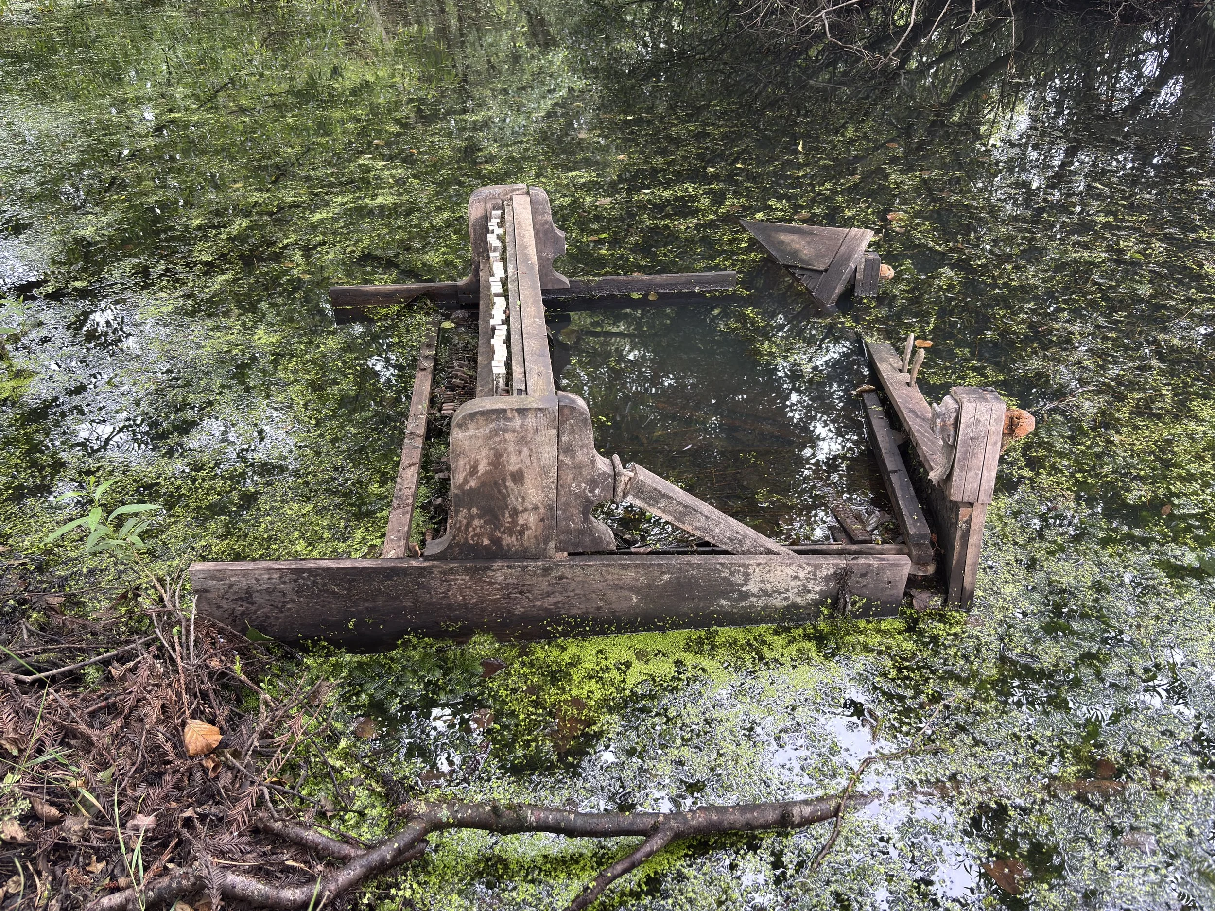 I don’t remember it ever like this - no longer watery, the pond has become a dense mass of pond plants and catkins. The entire area reads as a solid, verdant green, perhaps like a grasslands or carefully mown lawn. The piano looks grounded in a way it didn’t before, like it might perhaps be growing out of the earth.